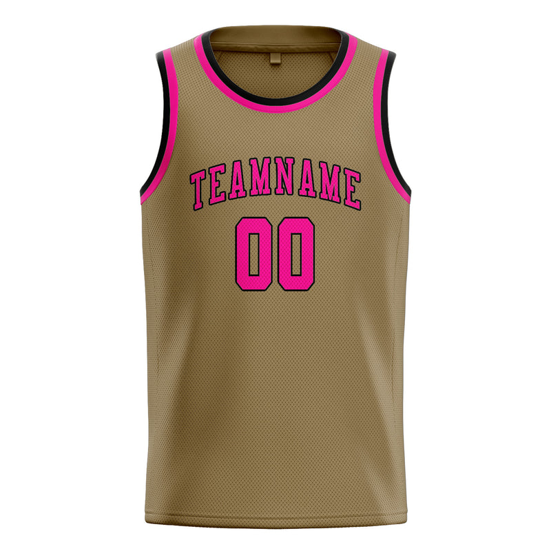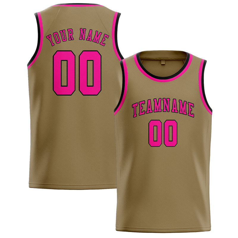 Custom Light Khaki Pink Basketball Jersey