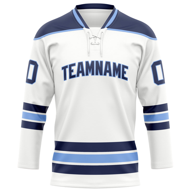 Custom White Navy Solid Colour Hockey Jersey
