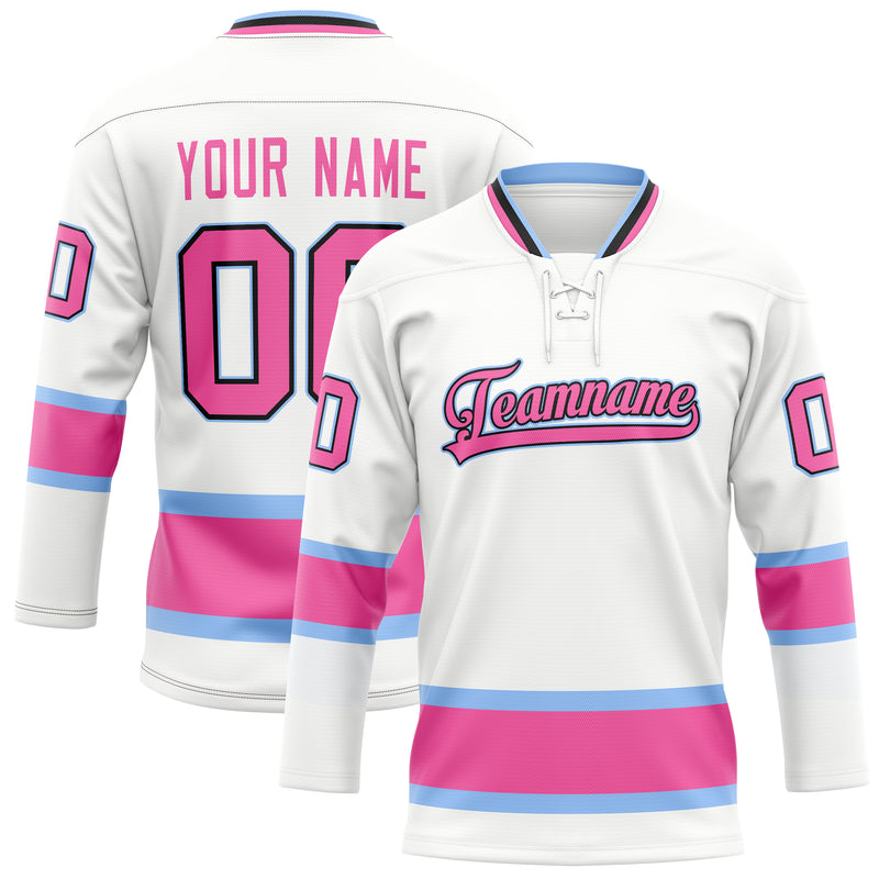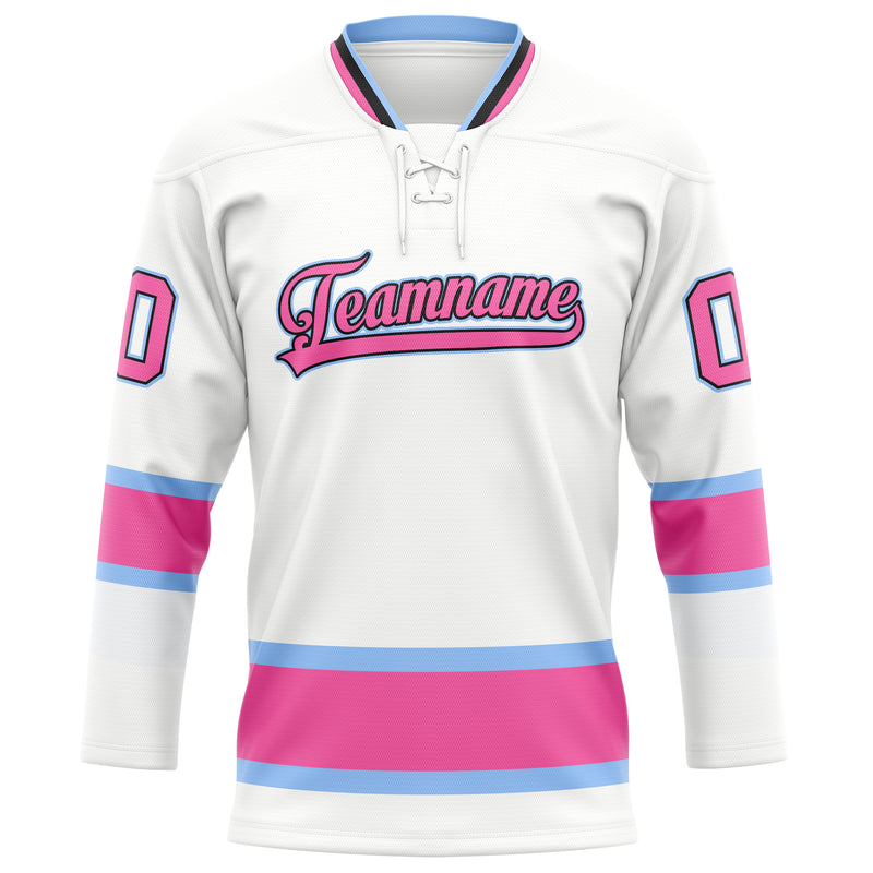 Custom White Pink Solid Colour Hockey Jersey