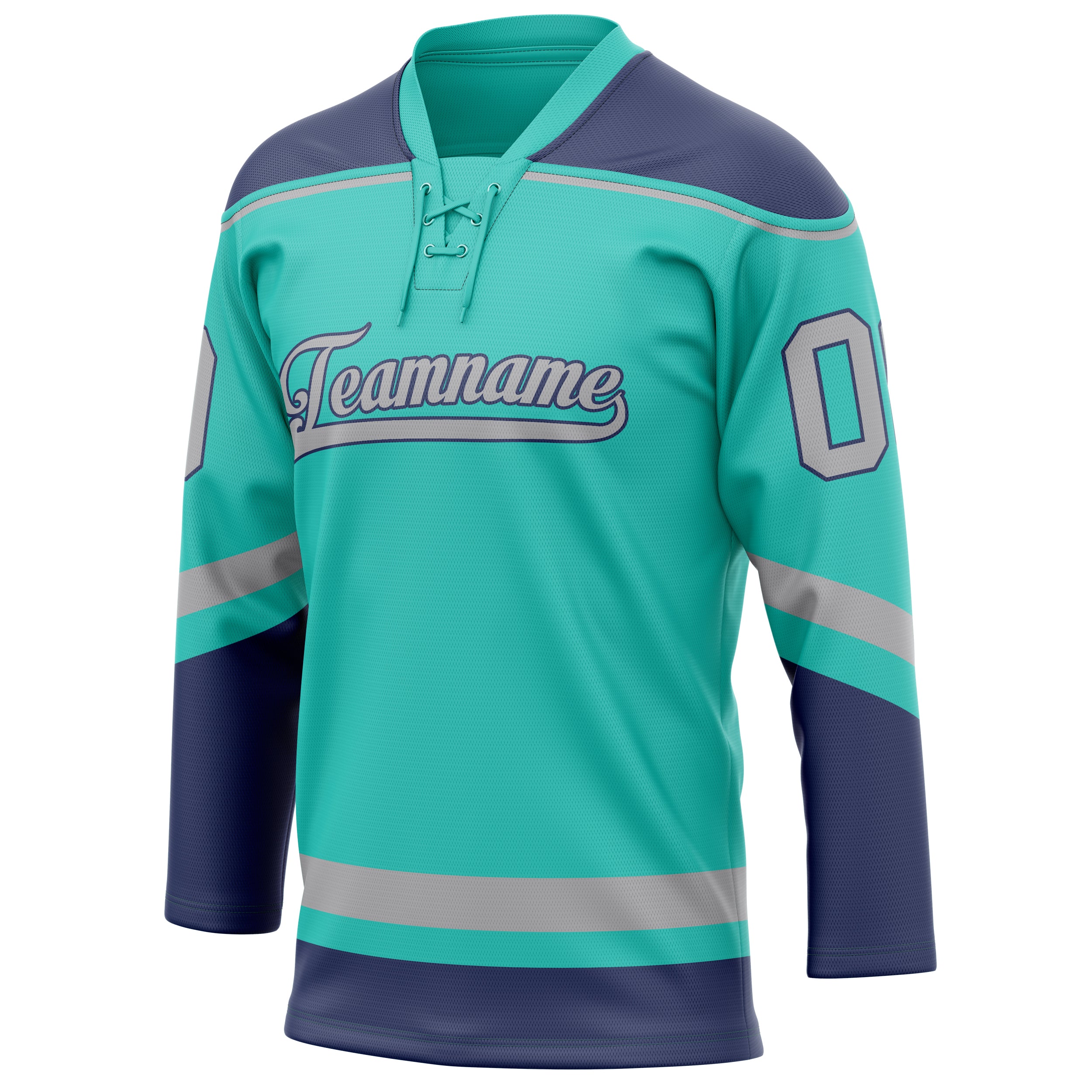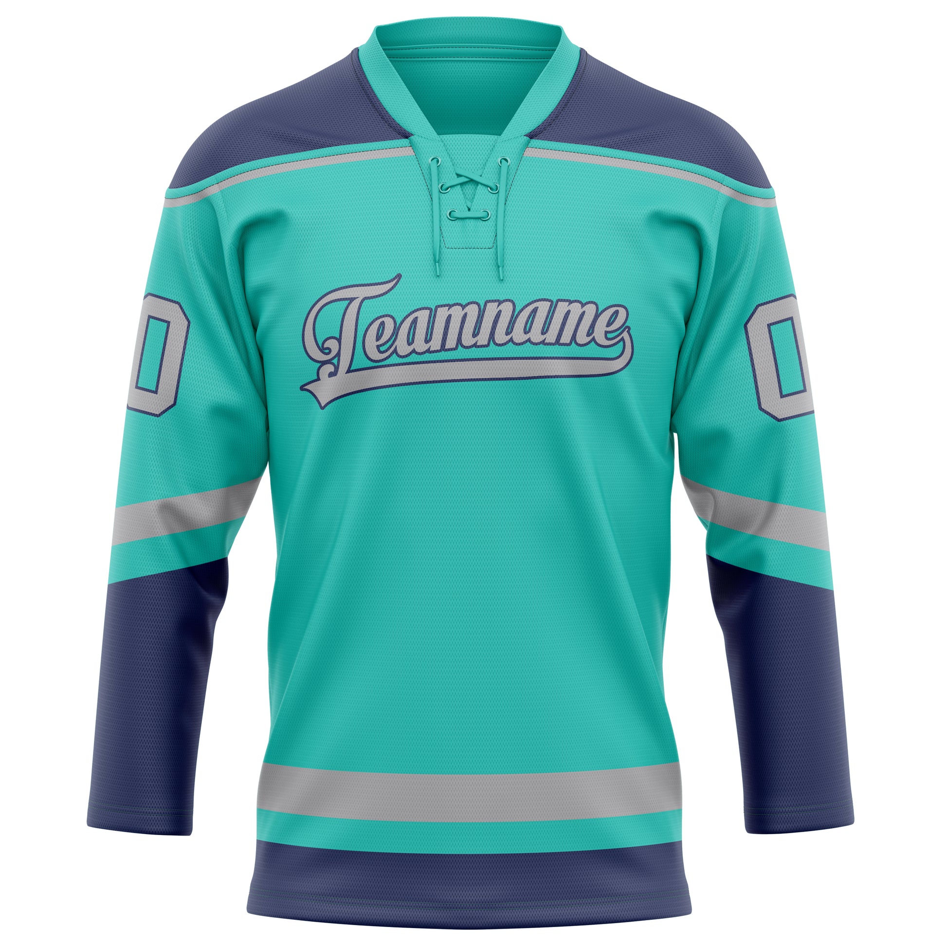 カスタムアクアネイビーソリッドカラーホッケージャージ
