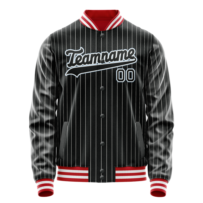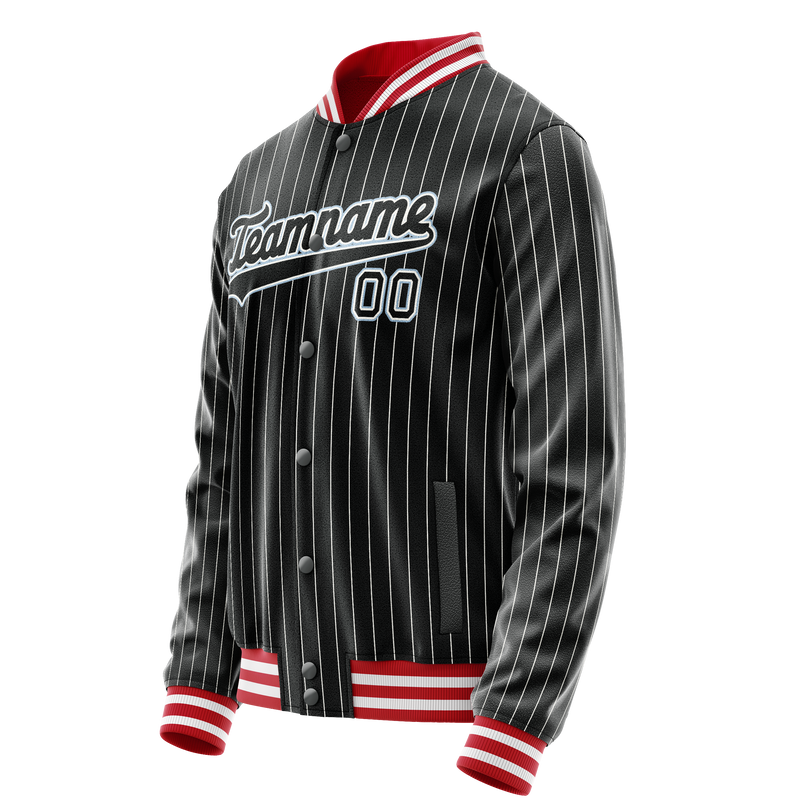 カスタムブラックライトブルーグレーピンストライプバーシティレターマンジャケット
