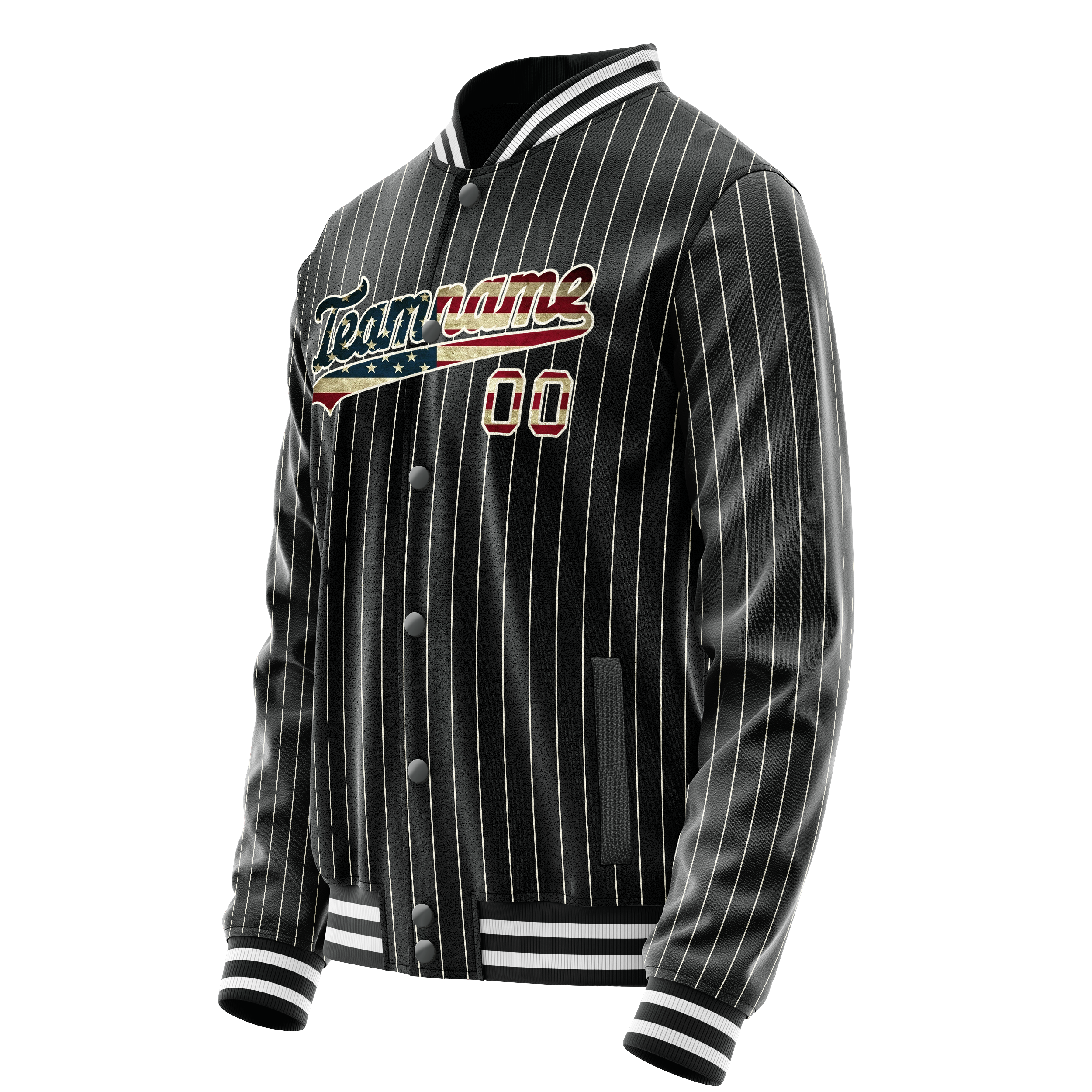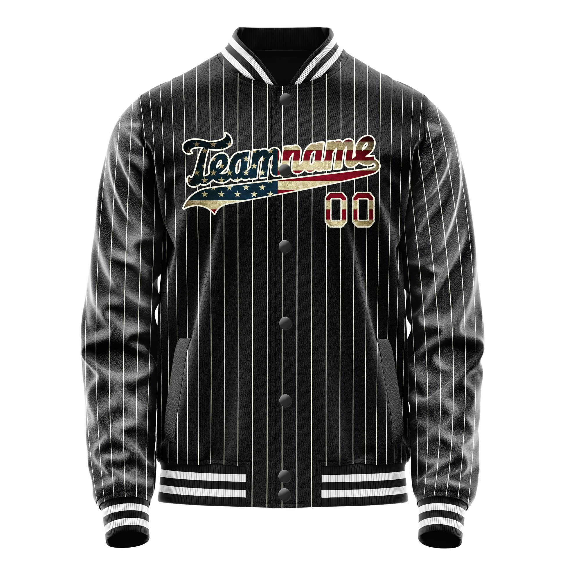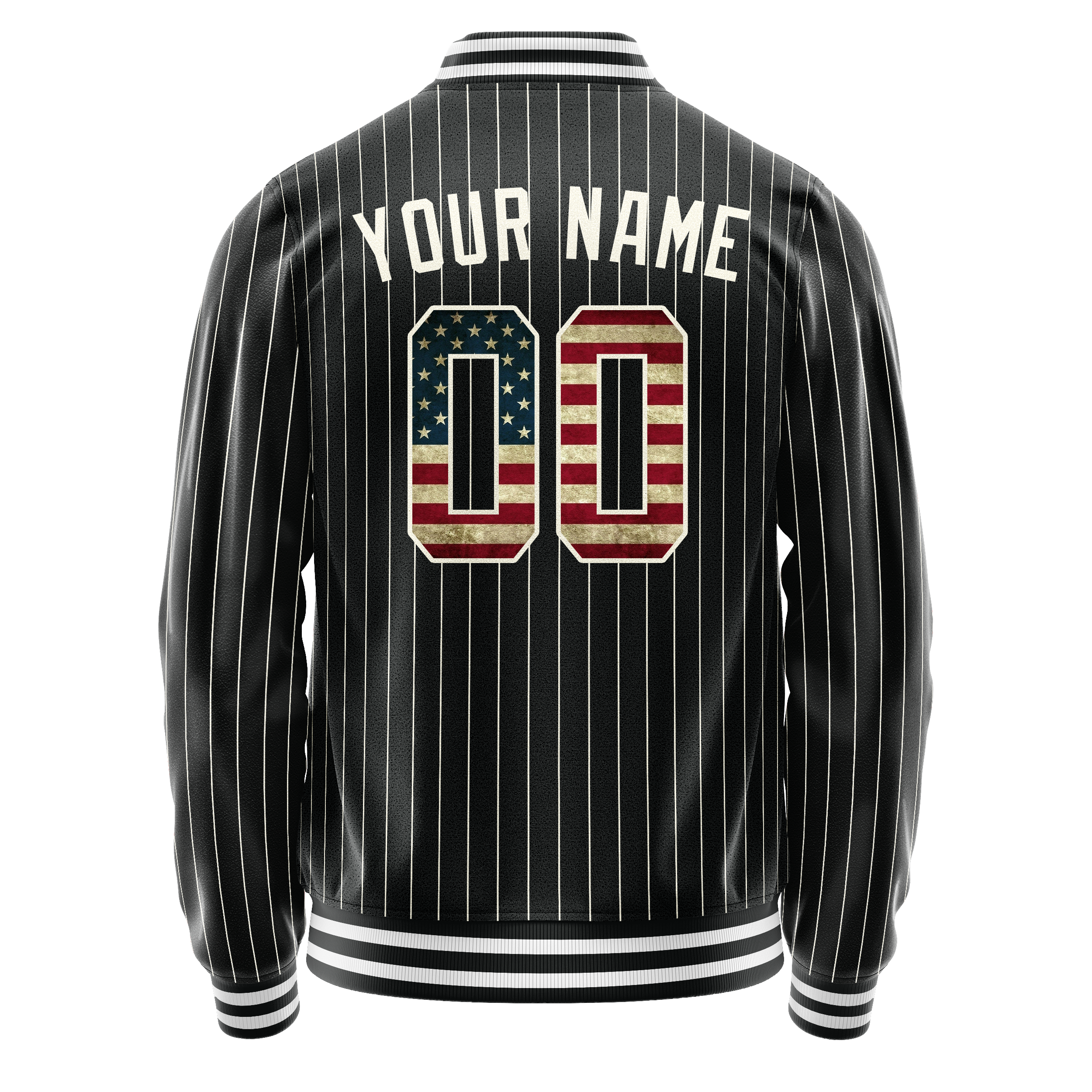 カスタム ブラック ヴィンテージ USA フラッグ クリーム ピンストライプ バーシティ レターマン ジャケット