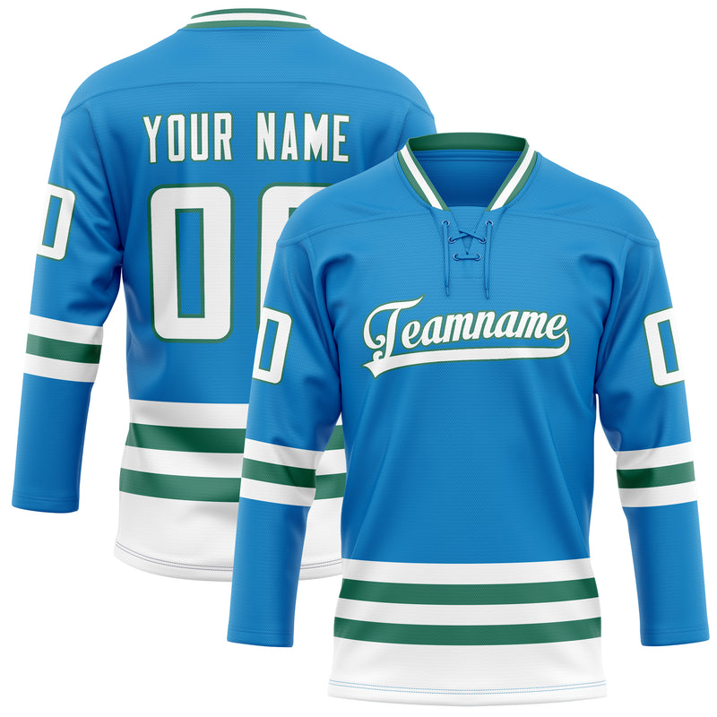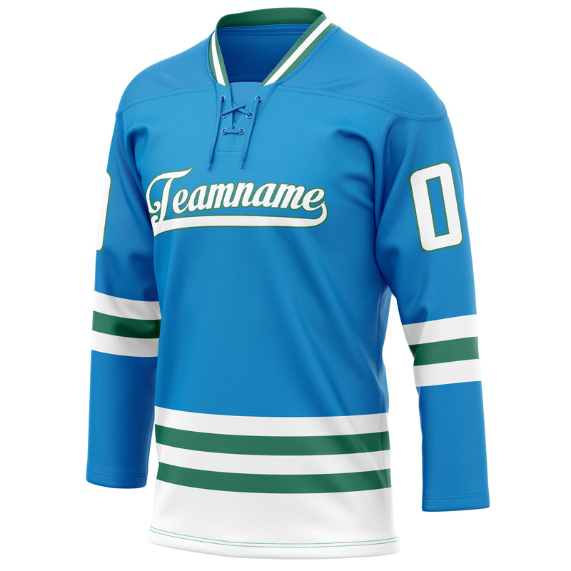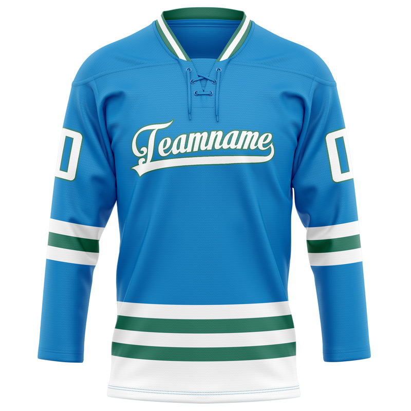 カスタムブルーケリーグリーンソリッドカラーホッケージャージ