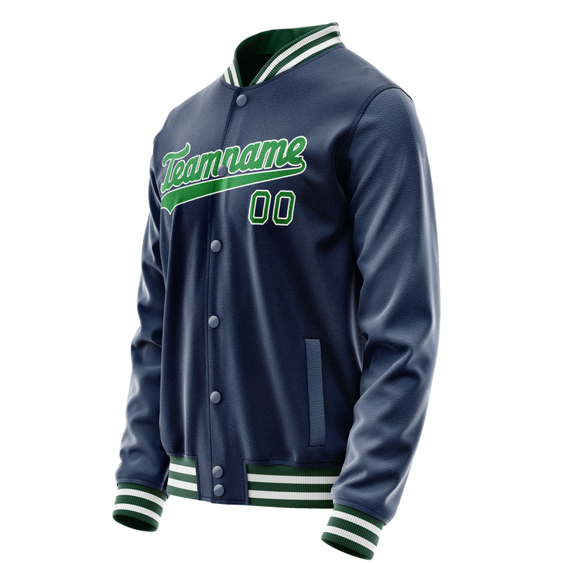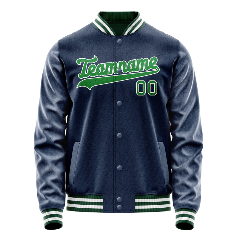 カスタムブルーネオングリーン無地バーシティレターマンジャケット