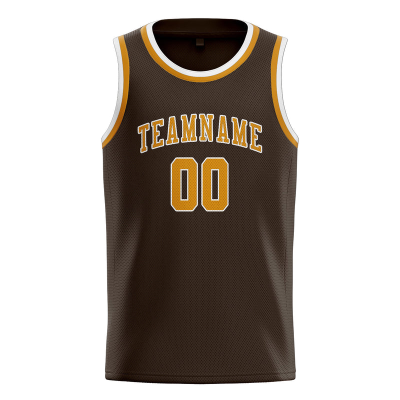 カスタムブラウンイエローバスケットボールジャージ