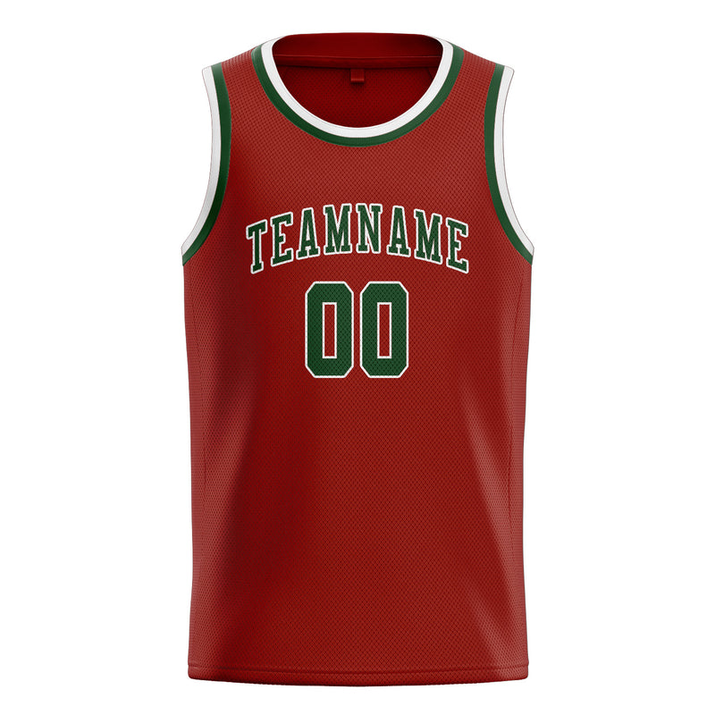 カスタムコーラルレッドダークグリーンバスケットボールジャージ