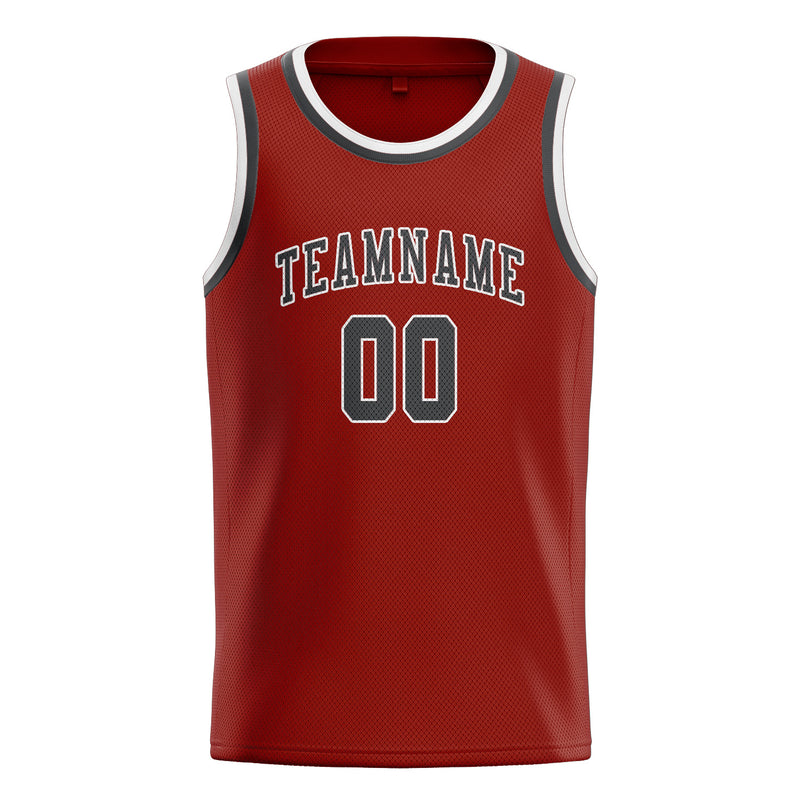 カスタムコーラルレッドダークグレーバスケットボールジャージ