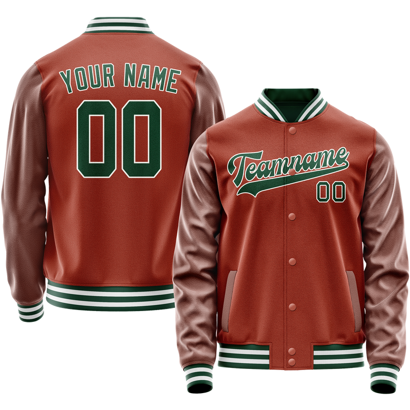 カスタムコーラルレッドグリーン無地バーシティレターマンジャケット