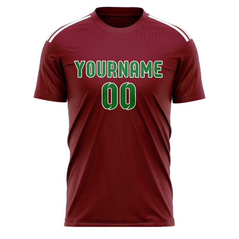 カスタムクリムゾンレッドエメラルドグリーンサッカージャージ