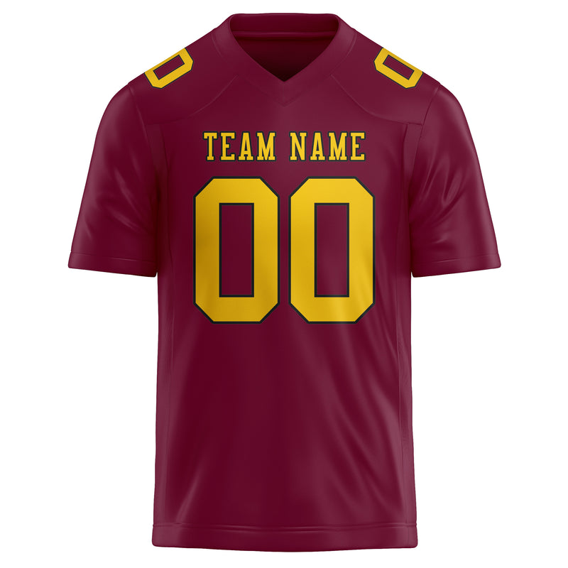 カスタムクリムゾンレッドゴールドフットボールジャージ