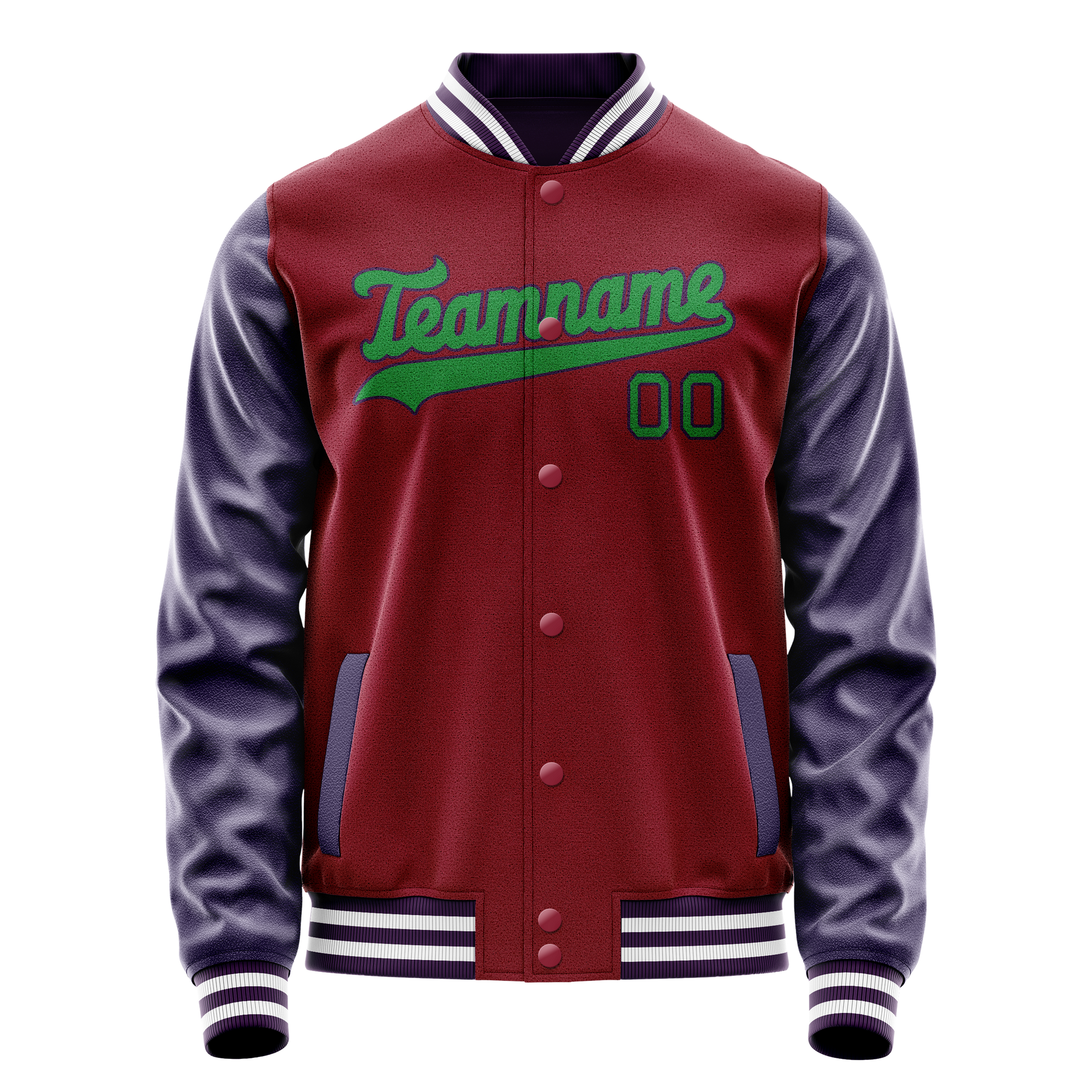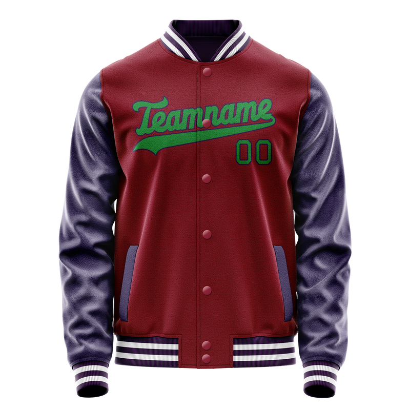 カスタムクリムゾンレッドネイビーソリッドカラーバーシティレターマンジャケット