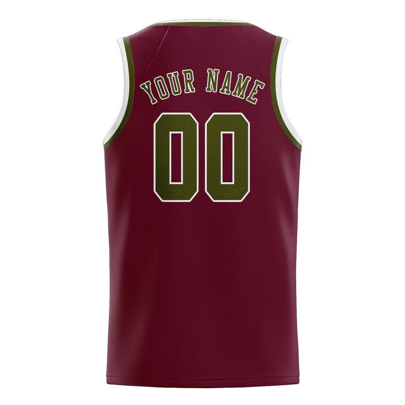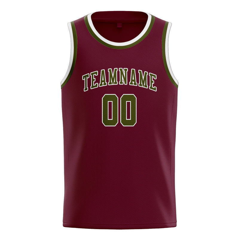 カスタムクリムゾンレッドオリーブバスケットボールジャージ