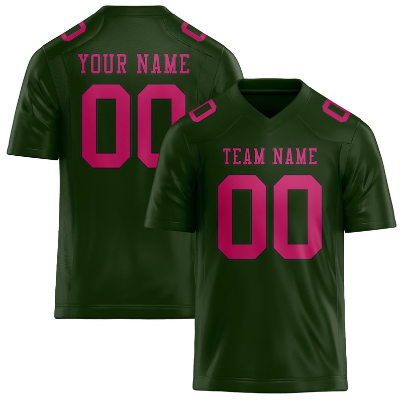 カスタムダークグリーンピンクフットボールジャージ