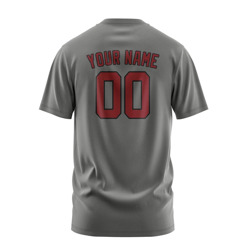 カスタムダークグレークリムゾンレッドTシャツ