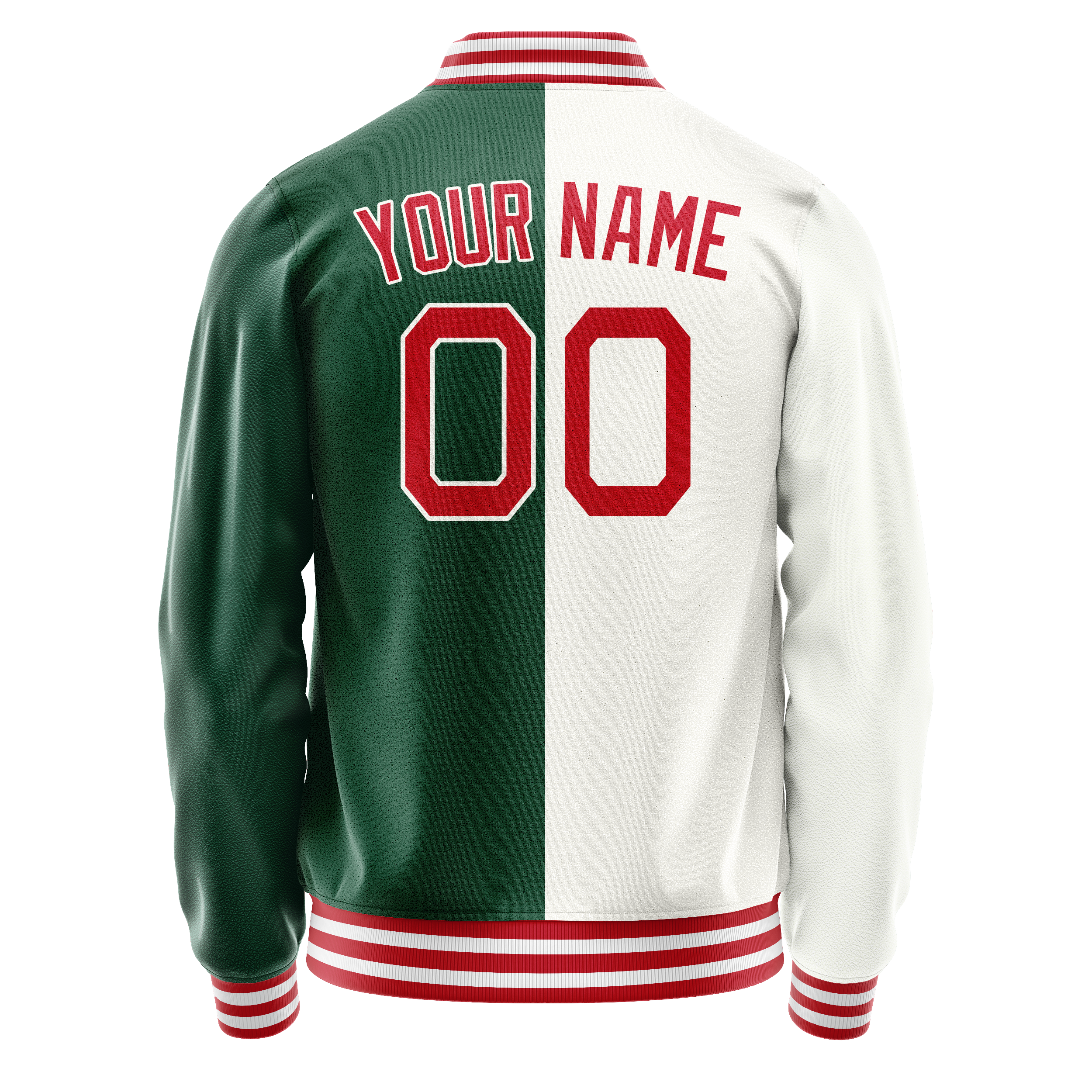 カスタムグリーンホワイトスプリットバーシティレターマンジャケット