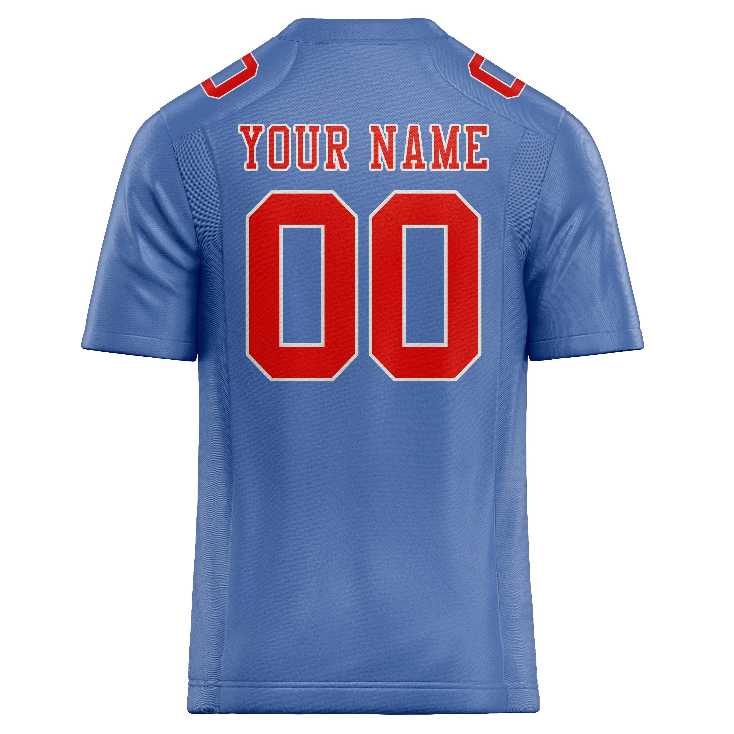 カスタムライトブルーオレンジレッドフットボールジャージ