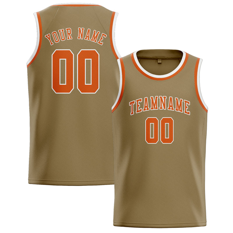 カスタム ライトカーキオレンジ バスケットボール ジャージ