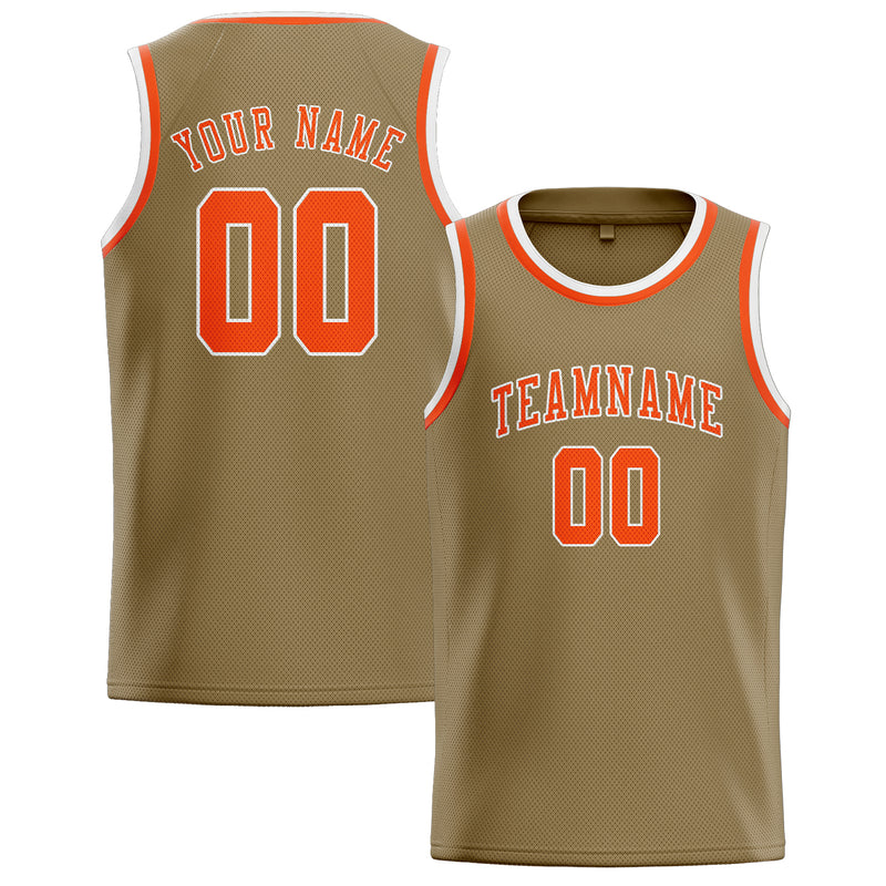 カスタム ライトカーキ オレンジレッド バスケットボール ジャージ
