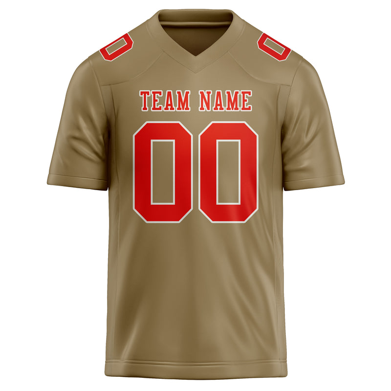 カスタム ライトカーキ オレンジレッド フットボール ジャージ