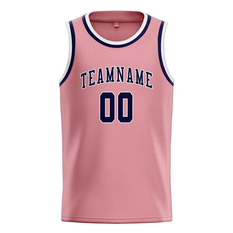 カスタムライトピンクネイビーバスケットボールジャージ