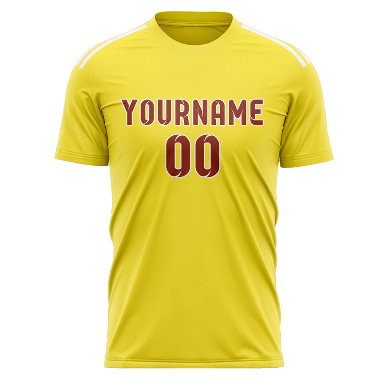 カスタムライトイエローコーラルレッドサッカージャージ