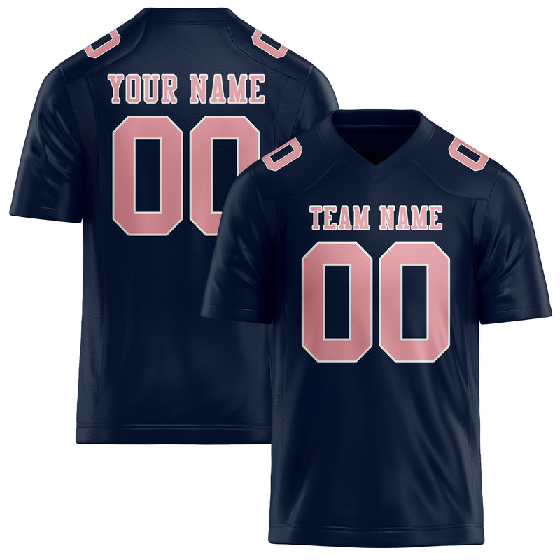 カスタムネイビーライトピンクフットボールジャージ
