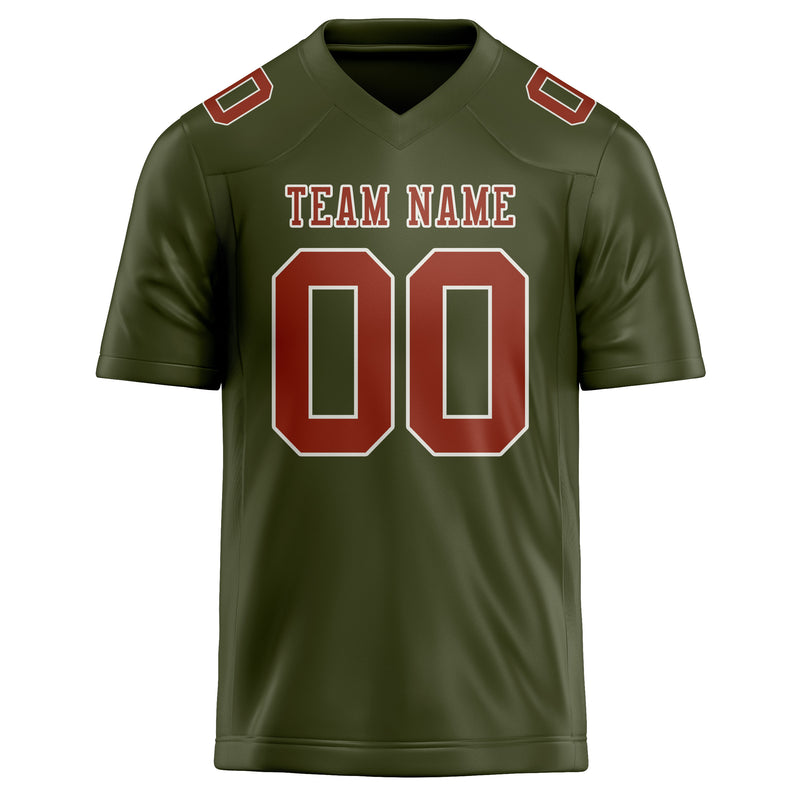 カスタムオリーブコーラルレッドフットボールジャージ