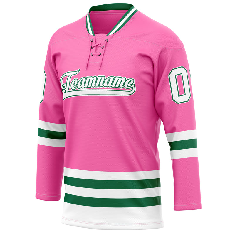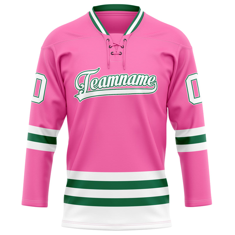 カスタムピンクケリーグリーンソリッドカラーホッケージャージ