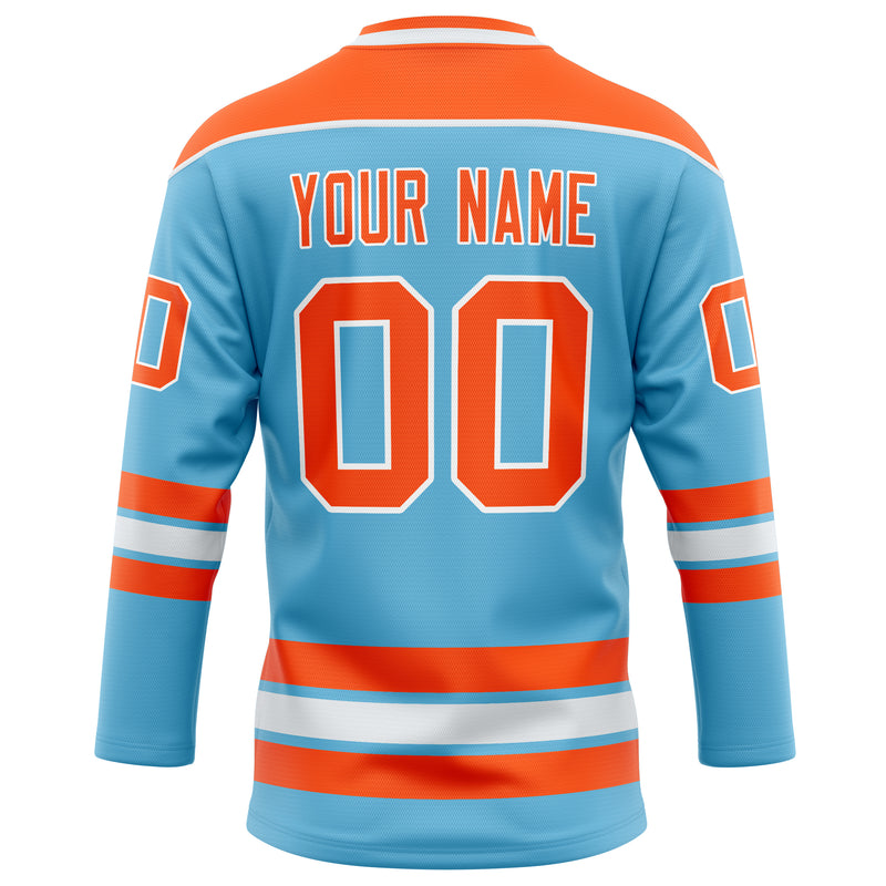 カスタムスカイブルーオレンジソリッドカラーホッケージャージ